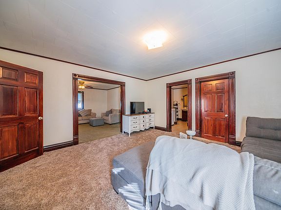 This beautiful home reminds you of days gone by. If looking for a home, or for an investment property, you will want to take a look at this one. Original wood has been refinished, new paint in the large living room and dining room. The large master bedroom is gorgeous with all of the windows and french doors leading out the the wrap-around porch. There is a walk-in closet, and this room also has new paint. Nice eat-in kitchen and large bathroom with laundry area. Partial unfinished basement. Nice detached 24'x40' garage with concrete floor, two overhead doors and side entrance. Plenty of room in garage for your vehicles, storage, & work area. You will love to relax on the 191' wraparound porch! Reasonable offers considered, motivated seller! Inspections welcome, no repairs paid by seller. Cooktop/oven; Rangehood/fan
