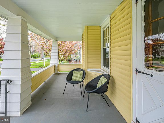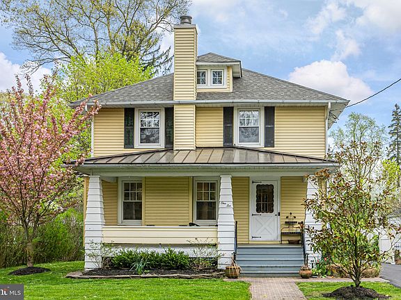 On one of Pennington’s best-loved streets, this sun-flooded classic welcomes with a lemonade-friendly front porch, a spacious, character-filled interior, and a location that can’t be beat! Toll Gate Grammar, shops, and cafés are a mere stroll away! Wood floors and built-ins grace the living and dining rooms, which are open to each other. Both take in the glow of a wood-burning fireplace. The kitchen is a total charmer with its ceramic tile countertop that serves as a breakfast bar and its stainless steel appliances. A handy side door reaches the driveway allowing for easy grocery unloading. A large family room anchors the back of the house with zones for gathering and dining. Atrium doors connect it to the deck and backyard, where there’s also a detached garage. Upstairs, there are three spacious ancillary bedrooms and a clean-lined bath fanning from the second-floor landing. The primary suite has its own roomy bathroom with a skylight, a shower with dual shower heads, and a whirlpool tub. Broad blonde wood beams add farmhouse flavor to high ceilings and make this space feel an owner’s retreat. A walk-in closet is another pleasant find, plus there’s a sitting area that could serve many functions, from a home office space to a hobby nook.