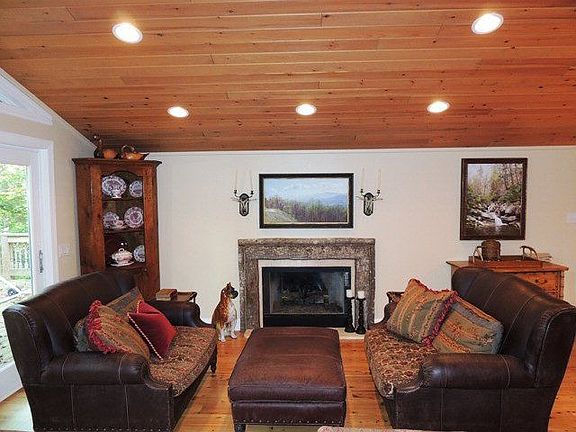 ELEGANT MOUNTAIN LIVING-Completely remodeled 5 bedroom/4.5 bath home situated on a corner lot. Wood flooring throughout main level in addition to a large stone wood burning fireplace that greets you at the front entrance. Large study/family room. Updated kitchen is a chef's dream; granite counter-tops, stainless steel appliances (includes warming drawer), huge island that serves as a prep area as well as an eat-in bar area. Tons of storage and office area. Gas fireplace in living room along with two sitting areas. Vaulted tongue and groove ceiling.