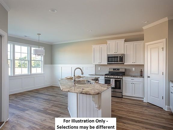 CUSTOM BUILT RANCH PLAN! Luxury Hardwood Style Flooring Thru Main Living! Kitchen: 'Colonial White' Granite Countertops, Custom White Cabinets, Custom Center Island w/Breakfast Bar, SS Appliances Incl Smooth Top Range, Microwave & Dishwasher, Walk in Pantry! Open to Casual Dining w/Triple Window Overlooking Backyard! Master Suite: w/Tray Ceiling & Plush Carpet! Master Bath: Tile Flooring, Custom Cabinets, Dual Vanity w/White Quartz, Walk in Shower w/Bench Seat & Walk in Closet! Family Room: Custom Surround Gas Log Fireplace & LVP Style Flooring & Crown Molding! 2-Car Garage w/Work Area!