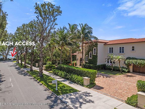 Located on one of the most ultra prime, sought after tree-lined streets, this level 5 totally renovated 5/6.1 is only second house from the ocean! Extraordinarily scaled, it boasts high ceilings, stunning finishes, easy flowing floor plan and the most magnificent gardens by Nievera-Williams. Its oversized outdoor loggia is an extension of the generous living areas, and an upper terrace adjoins the 3 second floor bedrooms. Designed for the Palm Beach lifestyle, this ''filled with character'' treasure includes a striking Mizner-style beamed living room, a gourmet eat in kitchen, gracious entry, elevator, limestone, marble and wood floors and more. It is truly a move in ready home, you can enjoy immediately.