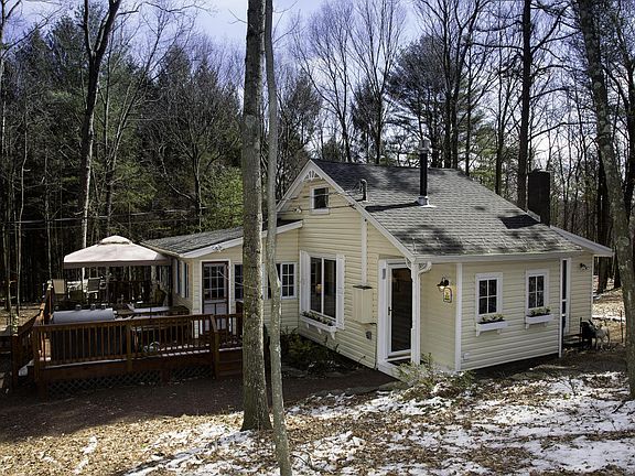 Authentic Craftsman Cottage awaits You! 2+ Bedrooms, 2 Full Baths, 2+ Acres, Less than 2 minutes to Lake Wallenpaupack and Taxes way Under $2k!($1,126.93 total annual tax to be exact!) NO DUES, No Community rules, all FUN! It gets even better: Since ownership Sellers have installed Quartz Countertops with Travertine Tile Backsplash, a country Double Sink and new faucets, new state-of-the-art Stainless Steel Appliances, a huge new deck, a new roof, and new storm windows! Sellers visits more frequent and longer, they moved-in full-time! Now new paint and trim and enhanced gas heater, along with maintenance-free siding and landscape makes this home a real treasure in every way! Uncomplicated Lake Lifestyle can be yours! Call for your private showing today!