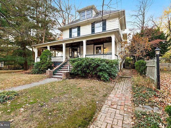 Marking it's 100th Birthday last year, this Merchantville beauty boasts Amazing details throughout that exude original Charm and Character! Featuring a BRAND NEW ROOF (sellers are having installed prior to home sale!!), Wrap-around Front Porch, Large Lot set on an Absolutely stunning block, and 2 sets of petite French doors to both porch and balcony access! As you enter through the extra wide Dutch door, you'll step into the front vestibule offering a coat closet with upper cabinet storage on the left and a convenient half Bath on the right. Through the next door you'll be enveloped into the Spacious Foyer showcasing the Stunning original Chestnut woodwork, wood floors and leaded/stained glass all found throughout the main floor! Grand Living Room offers a wood-burning Fireplace with a rich mantle surround and side porch access. You'll pass a hallway storage closet (sink not operational) as you enter into the cozy Family Room which features a 2nd Fireplace, this one gas fired, and offers dual built-in display shelves flanking either side of the marble surround. Entertaining space continues as you continue into the breathtaking Dining Room boasting chestnut coffered walls, beamed ceiling, stained glass windows and built-in china cabinet. A butler's pantry with original swinging door leads into the expanded Kitchen. Presently featuring stainless steel appliances including dual wall ovens, an electric cooktop, rear Staircase access and with Breakfast room space and penisula for additional seating, this large footprint could easily be transformed and reimagined (think extra long island!). The main floor dedicated Laundry room offers back access onto the rear deck. As you head upstairs, you'll find 4 Bedrooms and a Full Bath all bordering a traditional large landing. 2 of the Bedrooms feature a connecting door between them, and the primary bedroom features roof top access (this could be transformed into a usable space by adding proper coating and railings). The finished 3rd floor features two extra rooms and a Full bath with stall shower. This historic "Swope House" offers ample space and includes a Basement, additional crawl space (the old coal is still in the corner!), root cellar, and walk-out to the attached Garage. Additional features include wired security system, functioning fountain/pond, Off street parking and several ornate light fixtures. Lots of Opportunity to make this as-is Gem your own, but with the sellers having the Knob and tube recently removed, the guarantee of a New Roof before closing, and the inclusion of a 1 year HSA Home Warranty, what's not to love?! Walkable to the Community Center and downtown shops and restaurants, you can also enjoy local amenities like the Merchantville Country Club, community walking path, community garden, tennis courts, parks, and close to Cherry Hill Mall and Philadelphia bridges!