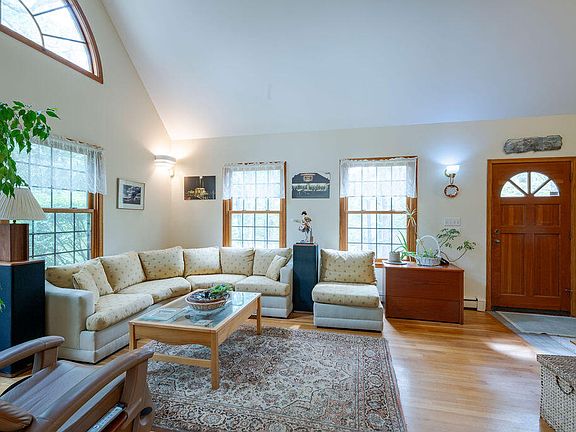 Contemporary cape - Well maintained occupying a level high, private, wooded lot. Tranquil setting situated above paved private road below. Spacious free-flowing interior lay-out. Living room with vaulted ceiling & floor to ceiling brick facade for gas fireplace. Well equipped kitchen - granite countertops & breakfast bar. Open to dining area - through to living room. 2 sliders to deck. First floor bedroom and full bathroom with first floor laundry. Stairs on side of livg room lead upstairs to 2 bedrooms, plus a loft that overlooks living room. Full bathroom with shower and walk-in tub. Outdoor shower. Many upgrades and extras including covered EV charging station, solar panels (owned), electrically operated awning, whole house fan, automatic generator, 2 heat pumps. Spacious deck, additional storage shed & detached screened studio w deck located at rear of property. Offered fully furnished. Whidah Way is a private, town maintained, paved road ending in a cul-de-sac. Quiet neighborhood - no through traffic. Convenient location. Travel back road to Wellfleet center for shops, library, easy access to harbor & bayside beaches or to Bound Brook Island. Special Opportunity