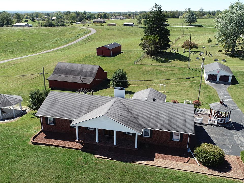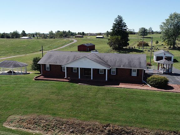 If you are looking for a true Kentucky home and place to hang your hat at, look no further. Brick ranch with 3 upstairs bedrooms and 2 bedrooms in your mother in law suite and full finished basement, complete with kitchen. 2 gazebos with one attached to walk out porch over looking almost 3 acres of beautiful land. Attached 2 car garage and detached 2 car garage. Barn/workshop included, along with another metal building for storage. 3 additional acres can be purchased with lot and can be seen in the overview of the pictures. House updates include new pex plumbing through the entire house. Ten new Vinylmax Edison windows.New ceiling fans in all bedrooms and kitchen.Detached garage has all new electric, outlet lights and new door openers. Extra kitchen cabinets and granite counter tops installed this past summer.