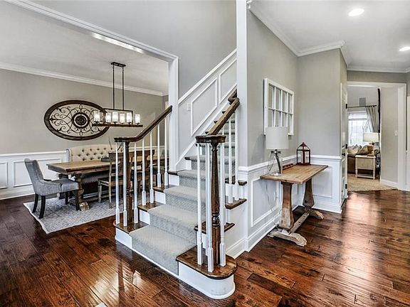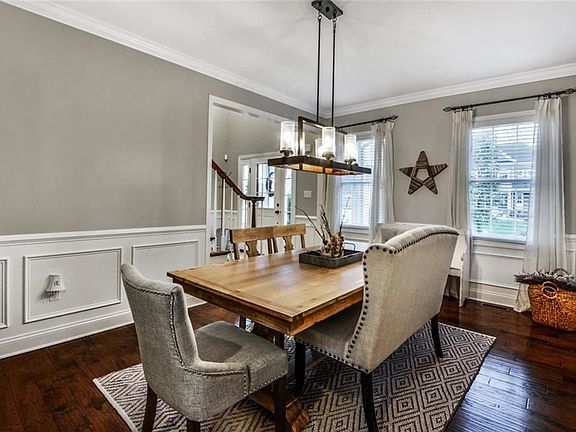 Stunning brick and Hardie plank residence in Myoma Woods. Grand 2 story entryway with turned staircase. Living room with custom french 15 light doors and transom. Elegant Dining room includes wainscoting, chair rail and crown molding. Expansive Kitchen/Breakfast area features custom 36' cabinetry, granite counter tops, upgraded stainless steel appliances, 4 seat center island which includes custom trim, ceramic tile backsplash and pantry. Grand 2 story Family room includes gas log burning fireplace flanked by floor to ceiling custom stone wall. Double doors lead to a private 13x11 Den. The first floor also includes scraped hickory hardwood flooring and detailed trim work through out. The Master retreat features a tray ceiling, crown molding and indirect lighting, double sinks, quartz counter tops, custom ceramic tile shower featuring double shower heads, soaking tub, ceramic tile flooring and backsplash and private water closet. A 17x10 and 11x7 walk in closets handle owner storage