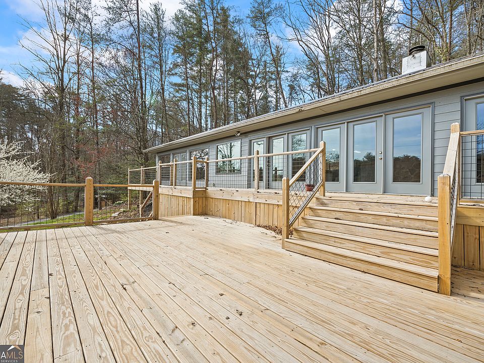 Motivated seller, now offering $7,000 in seller concessions for the buyer to use as they prefer! Nestled in the serene Chimney Flats of Clarkesville, this charming three-bedroom, two-bathroom home offers tranquility and picturesque surroundings. As you enter, the kitchen greets you with breathtaking views of the flats, seamlessly flowing into an open-concept living space that combines dining and relaxation. The split bedroom layout provides privacy, with the expansive primary bedroom featuring its own cozy wood-burning stove and ample space for an office or flex area. The primary bathroom boasts a step-less walk-in shower and a separate soaking tub, complemented by a single vanity. Two additional bedrooms are tucked away, sharing a conveniently located full bathroom that also serves guests. The front of the home is adorned with doors and windows that lead to a newly built deck, perfect for enjoying the natural beauty. The warm tones of the pine walls and the stone fireplace evoke a cozy cabin feel. With every room offering a view, you'll be inspired to explore the nearby Moccasin Creek State Park and Lake Burton, just 11 miles away. The vibrant town of Clarkesville offers a delightful mix of festivals, shopping, and dining options. Additional land is available for those looking to expand their oasis. Experience peaceful living at its finest! New gutter on the front of the home and also new well pump in 2025. Adjacent land available, Listing 10406301 for 1.65 acre at $43,000 and listing 10406312 for 2.21 at $55,000.00.