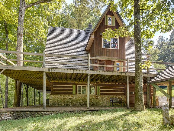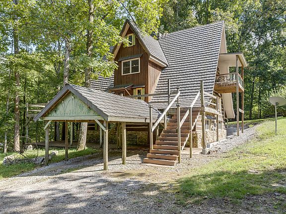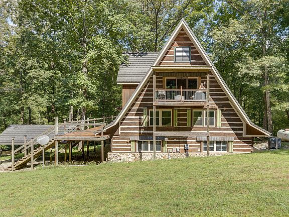 Bordered by Laurel Hill Wildlife Preserve, this private retreat on 135 Acres is only minutes from the scenic Natchez Trace Parkway and features a rustic log A-Frame home overlooking year round creek and waterfall with remodeled kitchen, custom cabinetry, stunning master bath with heated slate floors and hammered copper tub, soaring ceilings and stacked stone fireplace. Bedroom balcony and wrap around porch are perfect for watching wildlife and taking in the panoramic views. Home has Solar Power!