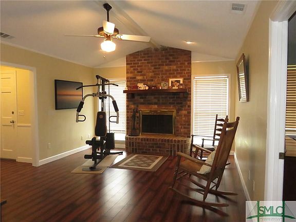 Beautifully landscaped brick home located in one of Pooler???s finest neighborhoods offers a spacious split floor plan with 3 bedrooms and 2 full baths. Upgrades include wood laminate and ceramic tile flooring. The great room features a vaulted ceiling, fireplace and built-in book case. An oversized dining room is situated just off the kitchen. The sun room overlooks a private backyard. Enjoy your summer afternoons relaxing in the in ground pool. Also, included a storage building and fire pit.