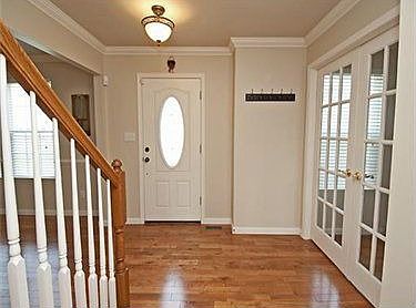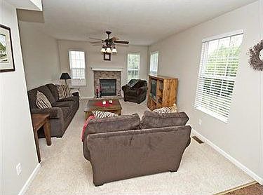 Excellent condition, hardwood foyer,den/LR with French doors, Stainless S appliances KIT w/island and large pantry, open to Familyroom. 4 bedrooms 5 ceiling fans, 2nd floor laundry, sliders to large deck. Lower level is drywall ready w/ walk-out. Nice lot backs to green space. Move In condition! Immediate occupancy!