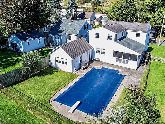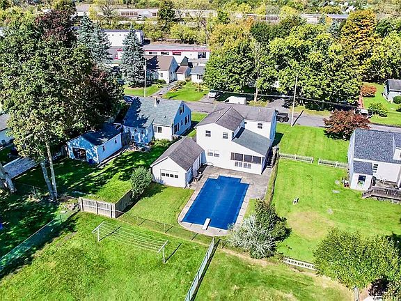Charming Cape Cod-style home nestled in Camillus, featuring gleaming hardwood floors throughout the main level. Enjoy the cozy family room, inviting living area, and the convenience of a first-floor bedroom with a full bath. The second floor boasts three spacious bedrooms, including a luxurious primary suite as well as central air and laundry. Step outside to a delightful three-season room that opens to a beautiful in ground pool, perfect for summer relaxation. A detached one-car garage adds to the appeal. Located in the award winning West Genesee School District, this home offers both comfort and style. Seller has measured home with approximately 1854 ft.² of livable space. Easy to show!