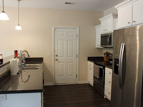 Cozy 3-bedroom, 2-bath home in a convenient in-town location! This charming property features a welcoming front porch, a single garage, and a spacious backyard with a covered patio. Inside, you'll find a comfortable living room and an eat-in kitchen with a refrigerator, stove, and dishwasher. The master bedroom includes an attached bath and a walk-in closet, while two additional sizable bedrooms share a hall bath. The main areas boast wood laminate floors, with carpet in the bedrooms for comfort. Other highlights include a 1 year home warranty with an APHW value of 499.00 stainless steel kitchen appliances and a durable Hardi Plank board exterior. Surround by a privacy fence
