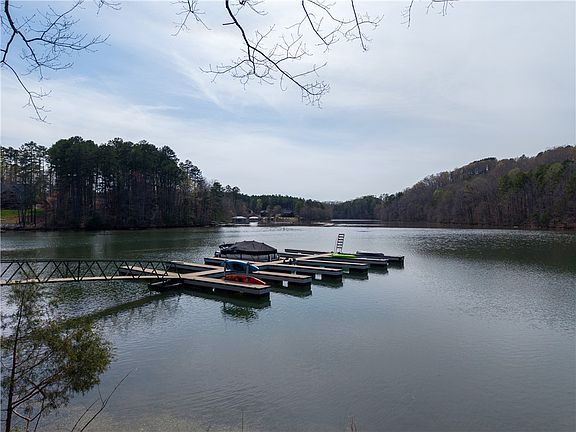 Charming character positioned on a peaceful 3+ acre Lake Keowee interior lot. Enjoy peaceful tranquility with Lake Keowee access positioned at the end of a wooded cul-de-sac. Accompanied with its own assigned boat slip, this home is perfect for those who love to enjoy the water with a low maintenance home. A welcoming front porch sets the tone for a mountain-lake retreat. A vaulted ceiling and double-sided brick fireplace gracefully separate the living area from the dining and kitchen. This innovative, split yet open, concept features a spacious kitchen island, ideal for family meals and hosting friends. Floating shelves, ample cabinetry and a brick backsplash ties in comfort and function with a craftsman flair. Off the back of the kitchen is a covered deck that overlooks the peaceful creek below. Enjoy the sounds of nature in this pleasantly inviting space. The expansive property is filled with mature mixed trees and extends towards the lake. The primary suite features large windows that flood the room with natural light. The primary bathroom offers a tile walk-in shower and double vanity. A generous sized walk-in closet offers custom shelving organizers for linens and additional storage. On the opposite side of the home are two guest rooms with a second full bath. Both feature large windows as a cheerful retreat for your guests. There are multiple hall closets, a spacious walk-in pantry and a walk-in laundry with a service door that leads to the driveway for ease of entry. The purchase of this lovely home includes an assigned, independent use boat slip and access to the community marina. There is not an HOA; only $500 per year grants your annual lake slip use. A home that is big on charm and small on maintenance. Great for a season or a lifetime, don’t miss this affordable Lake Keowee buy!