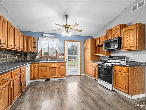 - Included: Range, Microwave, Dishwasher, Refrigerator, Washer, Dryer, Water Softener Owned