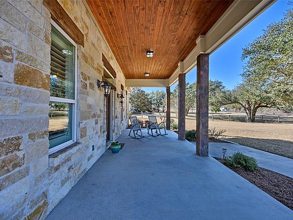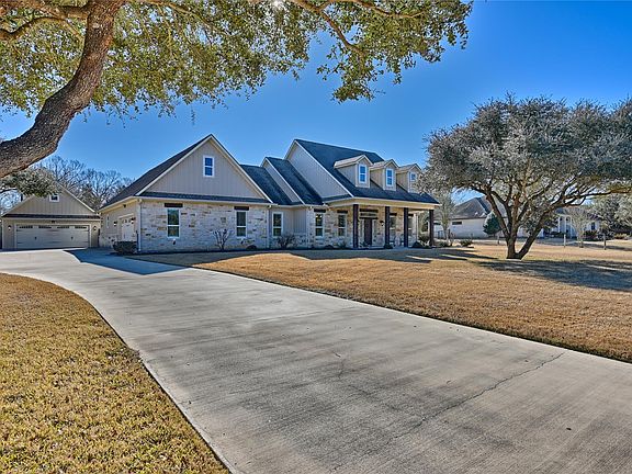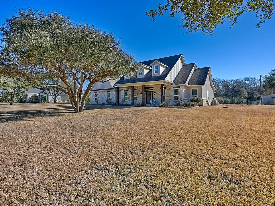 TIMELESS HILL COUNTRY STYLE! Come home to this property just outside of Brenham! Enjoy views of the Live Oaks outside your windows & unwind in the backyard area that feels like a private oasis. If entertaining is important, the bright kitchen is open to the vaulted living area anchored by the limestone fireplace & views of the spacious covered patio & pool for gatherings. Split floorplan; private primary retreat complete with sitting area, sizeable walk-in closet, & jetted tub. Elegant front entry, formal dining, & bonus room offering space for a home office, music or hobbies. Additional detached 2-car garage is ready to function tailored to your unique needs whether for storage or a potential project with additional living space in mind & built out with custom indoor/outdoor kennels. Classically beautiful with rustic touches including crown molding, stained v-groove ceilings, travertine tile, plantation shutters, & custom shades as some of the notable highlights this home offers.