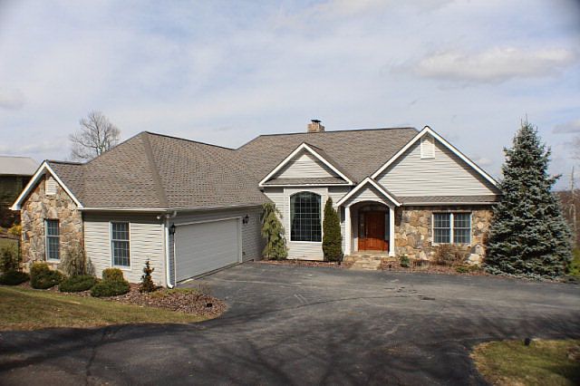 Gorgeous home in the NC Mountains with long range views. Home has full wall of window in the great room with cathedral ceilings. 3 bedrooms, home office,3 full baths, 2 car garage on main level, galley style kitchen with double dishwasher, bar, double oven, granite counter tops, solid surface cook top with down draft vent. Elaborate landscaped gardens with natural stone steps and various plants professionally manicured. 2 fireplaces, covered decks, oak hardwood floors, architectural shingles, and gas logs. Lower level has double car garage with space for 3 cars. Security system. Great house!