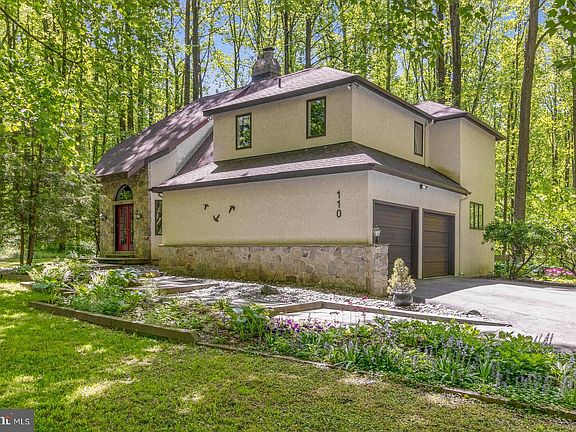 Welcome to 110 Woods Lane! A spectacular home situated on 1.5 private acres only steps from the White Clay Creek Preserve in the Avon Grove School District. Nature lovers will love the setting of this open lot backing to trees and fondly named "Daffodil Woods" by the current owners. A long driveway leads to the custom stone and stucco home featuring interesting angles and architectural details thru-out. A beautiful stone walk-way, complete with fish pond, border the front of the house. The 1st floor offers a large library with built-in bookshelves and hardwood floors making the perfect home office for those working remotely. To the right of the foyer is an open living room with hardwood floors and stunning wood paneled vaulted ceiling. The living room leads to a bright, 22 ft. ,2-story family room featuring French doors and a wall of windows that provide an abundance of natural light and overlook the rear deck and yard. The family room also features a charming built-in bar for entertaining. The focal point of the living room and family room is a spectacular 2 story, 2-sided stucco wood burning fireplace. The family room is adjacent to the eat-in kitchen featuring Corian countertops and curved peninsula to accommodate bar stool seating. A powder room is conveniently located off of the kitchen. Sliding glass doors lead from the eat-in section of the kitchen to the rear deck. The 2nd floor houses 3 bedrooms and 2 full baths that include the master suite with spacious bedroom and full bath with jacuzzi tub, 2-sink vanity and stall shower. A quaint 2nd floor deck is also located off of the master suite. An open hallway on the 2nd floor separates the master suite from the 2 additional bedrooms and showcases the vaulted ceilings with views of the rooms below. The 2nd full bath and laundry room complete the 2nd floor. The expansive rear deck provides unobstructed views of the private backyard. The oversized 2-car garage offers inside access and plenty of storage space. Additional notable updates include: brand new carpet on 2nd level, professionally painted interior, new water Neutralizer (Oct. 2020), new gutters and maintenance free facia & soffits (March, 2020), new roof (Sept., 2019), new heater and C/A (Sept. 2017), new hot water heater (July, 2016), new well pump (July, 2016). An absolutely wonderful property and location! Stucco has been inspected and very minor repairs (only caulking) are to be scheduled. Contact listing agent for details.