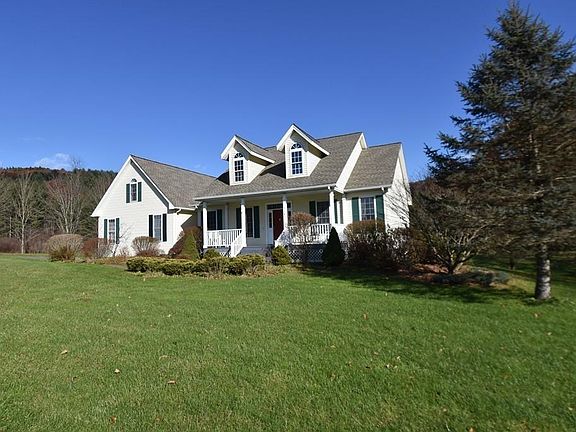 GEO THERMAL HEATED TOWN & COUNTRY CONTEMPORARY ON 8.5 ACRES of stunningly beautiful property. Exceptionally private, yet only a 6 minute drive to route 91. The views from the front and rear porches are not to be believed. Sunrise to the back and BIG SKY SUNSETS from the front. For the ECO minded, there is a newer 24 panel tracked solar array "owned" that is GPS controlled to follow the sun. Inside, the open concept Kitchen and Living room offer random width birch floors, custom crafted birch cabinets, stainless steel and granite. The 9' and vaulted ceilings throughout this upscale home creates a warm feeling of spacious elegance. The master bedroom has a nicely designed bath with whirlpool tub . The bonus family room is really good sized. Plenty of room for all the friends. This home, without question, is a rare find !