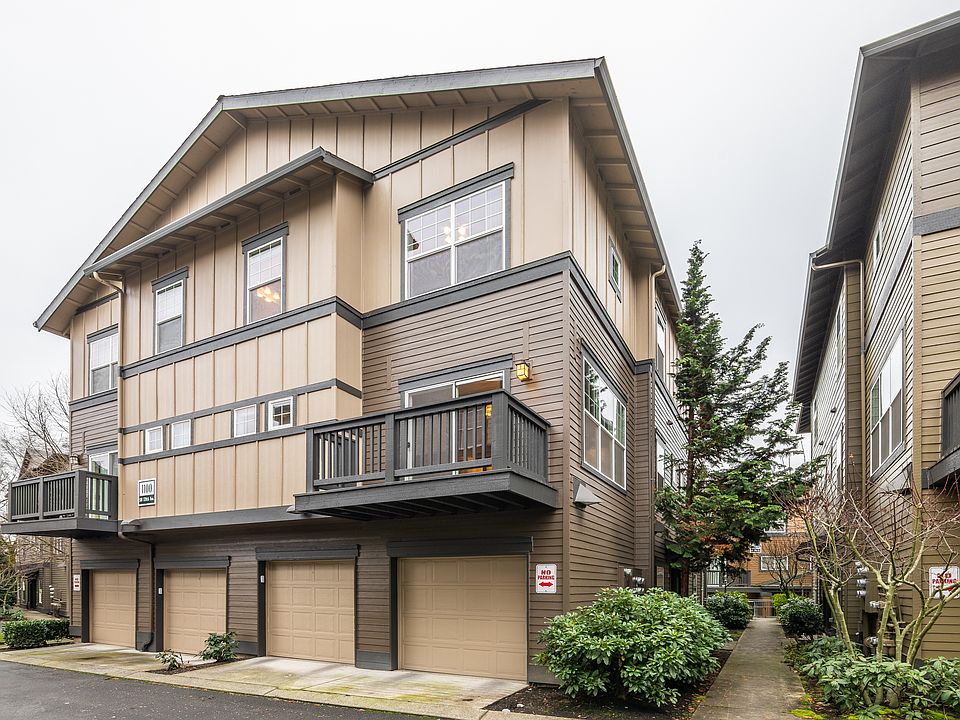 Adorable two bedroom, two and one-half bath townhouse style condo with 1,184 square feet of living space. Bright and airy open concept main living area and kitchen with stainless steel appliances, large kitchen island and cozy gas fireplace. Slider off dining area leads to your own private balcony. Upstairs you'll find the laundry and both bedrooms, both with en suite baths. Master bedroom with soaring ceilings. Convenient location and close to Silicon Forest.