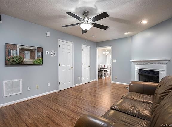 Beautiful open floor plan with large Great Room with ceiling fan and gas log fireplace opens to Kitchen and eating area. Hardwoods on Main and hallway & baths upstairs. Granite counters & ceramic tile back splash in kitchen. Ceiling fans in all bedrooms. Entertain on private deck facing woods. Refrigerator, washer & dryer remain. Interior recently painted. Berber carpet. Seller is open to leaving all recently purchased furniture with the right offer or negotiate separately. One Year Home warranty offered. Hot water heater approx 5 years old. Toilets 2020. Restaurants and shopping (Walmart, CVS, Banks, Bojangles, Zaxby's, KFC) within walking distance.