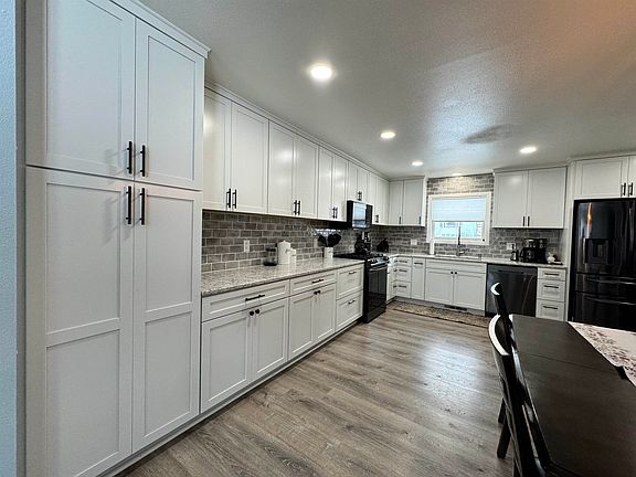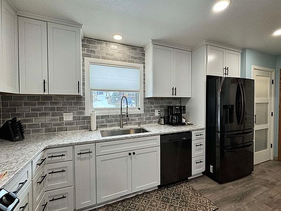 This charming ranch-style home, nestled in the NW hills of Minot, offers a blend of modern updates and cozy living spaces. Situated on a nice size corner lot, the property has undergone significant transformations in the last couple of years. Upon entering, you're greeted by a separate front entrance leading to a thoughtfully designed interior. The highlight of the home is the newer kitchen, featuring white shaker cabinets with soft-close drawers and cabinets, complemented by quartz countertops and all-black stainless-steel appliances, including a gas range. Updated lighting fixtures add a contemporary touch to the space, enhancing both functionality and aesthetics. The open-concept layout connects the living room, dining area, and kitchen, fostering a sense of spaciousness and connectivity. Newer plank flooring flows throughout the kitchen, living room, and hallway, providing durability and easy maintenance. The main floor includes three bedrooms, including a primary bedroom with an attached ¾ bathroom, as well as an updated main bathroom. Downstairs, a large second living area awaits, along with a generously sized bedroom with an egress window. The basement includes brand new carpeting and modern sliding doors. The laundry area that includes additional storage includes a new sink and an additional large utility/storage room. There is also an option to add a third bathroom, which is already plumbed. Outside, the fully fenced backyard includes a concrete patio, perfect for outdoor gatherings and leisurely evenings. A playset adds to the recreational appeal, offering fun for all ages. Notable updates to the property include freshly painted siding (2023), newer shutters on windows, and shingles replaced in 2020. A newer front deck enhances curb appeal and a hot water heater installed in 2022. Furthermore, windows on the main level were replaced 7-8 years ago. Overall, this maintained home offers a blend of modern comforts, functional design, and outdoor enjoyment, making it a wonderful place to call home in the serene surroundings of Minot's NW hills.