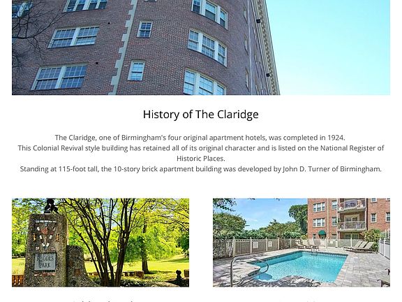 Highland Park Neighborhood 10th Floor Penthouse In Historic Claridge Building: Two master suites each with private full baths and large walk-in closets. Spacious central living area with granite wet bar. Updated kitchen with granite countertops, dishwasher, electric oven, and Sub-Zero refrigerator, pantry, and laundry closet w/ washer & dryer. Hardwood floors throughout and majestic views of downtown Birmingham skyline from every room. The Claridge Condominium offers secured entry, on site gym, gated parking (with two gate fobs), community pool. Rent includes cable, internet, water, and sewer. Located in the Highland Park neighborhood one block off Highland Avenue Walk to parks, restaurants, bars, grocery stores, shopping, hospitals, churches, and golf. Minutes from UAB and Samford. Rent includes water, sewer, Wi-Fi, and cable. No pets and no smoking in the building. Available February 15, 2025.