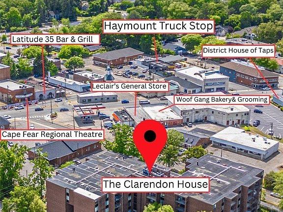 This condo is situated in the historic Haymount neighborhood in The Clarendon House. This one-bedroom, one-bathroom unit offers a cozy and inviting living space, ideal for those seeking comfort and convenience. The open floor plan includes a spacious living room with huge sliding glass doors providing an abundance of natural light. The modern kitchen is equipped with all essential appliances, including a dishwasher, range, and refrigerator, and microwave so that the kitchen is both functional and efficient as well as the recently replaced HVAC unit in 2024. The building offers secured entry, ample parking, and a communal laundry room on the first floor for added convenience. Within walking distance to the popular Haymount Truck Stop, Leclair's General Store, the Cape Fear Regional Theater, Latitude 35 Bar & Grill, Red Desk Café and Miller's Brew and a post office offering a vibrant urban lifestyle. The monthly HOA dues cover electricity, sewer, and water, simplifying living expenses.