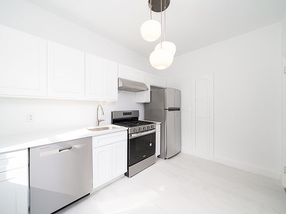Lots of natural light in a large corner 1 bed, 1 bath unit located across the street from NYC transportation. Brand new eat in Kitchen with Stainless Steel Appliances, gas stove, dishwasher and Refrigerator. Arch Opening leads to hallway and a large living room and bedroom. Hardwood floors throughout with a dark border. Vintage shade in bathroom from Etsy and wall sconces. Heat & hot and cold water are included in the maintenance. Building also has a laundry room app operated. Close to schools, shopping, NYC transportation (NJ transit bus 154 & 88 are at corner), major highways & James Braddock Park.