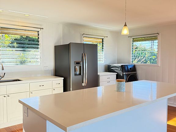 First time available, this family home will delight your senses. From the mesmerizing panoramic ocean, coastline and mountain views, the extensive, tasteful updates made throughout the home, the private, lush, tropical setting, the fenced yard and easy proximity to so many upcountry destinations, this plantation style home is the perfect match for those seeking sanctuary and an inspired lifestyle. The rental is the upstairs home, with quiet, respectful tenants living downstairs. This open plan home has been meticulously updated and maintained. With over 560 sf of covered decks, expansive views across open space, pineapple fields and bicoastal views to the ocean and Molokai, this is the perfect place to start and end the day. The kitchen features quartz countertops, shaker cabinets and slate gray appliances. The bathroom has a glass-tiled walk-in shower and a custom vanity. Key features of the home include jalousie windows allowing in tropical breezes, wood floors, and a private laundry. The fenced yard has numerous tropical, flowering and fruiting plants, including palms, camellias, banana, papaya and lilikoi. The fenced yard is suitable for a well-behaved dog to be considered on a case-by-case basis. This home is located on a quiet, dead-end street, yet walkable to Makawao for groceries, shops, and restaurants. Paia is an approximate 15 minute drive as is Hookipa and the Pukalani Farmer's Market and shops. Also nearby are Seabury Hall, King Kekaulike High School, Makawao Elementary and the Montessori School. 12-month lease term. Available now. No Smoking. Dog negotiable. Monthly rent includes sewer and trash. Tenant responsible for monthly rent and Hawaii GET tax ($4,400+$207.33=$4,607.33). Tenant responsible for cable, internet, phone and for electric and water above current use.