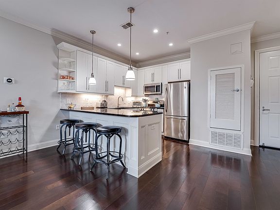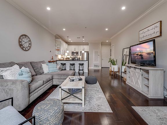 Welcome home to this bright, beautiful and oversized 958sf 1BR unit in the sought after steel and concrete Upper Grand. Thoughtfully and handsomely appointed featuring Nest smart home technology, hardwood floors and crown and base moldings throughout. Custom white cabinets, under counter lighting, granite counters, marble backsplash, breakfast bar with pendant lights & SS appliances makes cooking in and looking at your kitchen a dream! An open living/dining space with tall ceilings, recessed lighting and a juliette balcony create a sophisticated and inviting space. The massive bedroom has 2 oversized customized closets(1 walk-in), a Minka ceiling fan and room to spare! There is a large updated bath and new washer/dryer in the unit. This elevator building has a gym complete with Peloton bikes & common courtyard and is located close to restaurants, shops, Trader Joe’s, farmer’s market, transportation and the NW Resiliency Park- Hoboken’s newest and largest. With deeded 1 car garage parking included, the picture is complete!