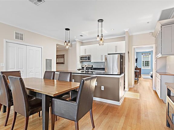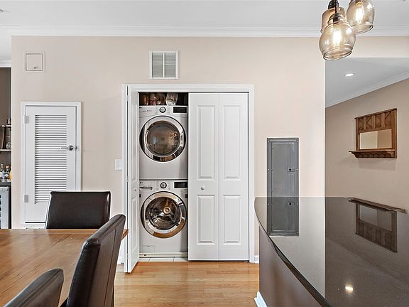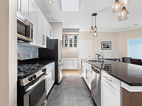 This 2 bed - 2 full bath condo on 11th and Adams is a rare opportunity in Hoboken, a top floor unit with a skylight in an elevator building with deeded parking, a spacious terrace, fireplace, and a common outdoor space. This unit has over 1300 square feet of living space, with incredible updates and renovations including all new Pella windows, brand new full size washer dryer, new Trane Quiet Model HVAC with Nest Thermostat, stylish kitchen back splash and custom storage built-ins throughout the unit including California closets in bedrooms and entry hallway. This incredible home also features crown molding, ceiling fan in master bedroom and living room, stainless steel appliances, and your own private terrace with room for dining. The building has an exercise room with Pelotons, private courtyard for residents with new furniture and landscaping, and an attached garage where your deed parking spot has room for an SUV. Reach out for a private showing today!