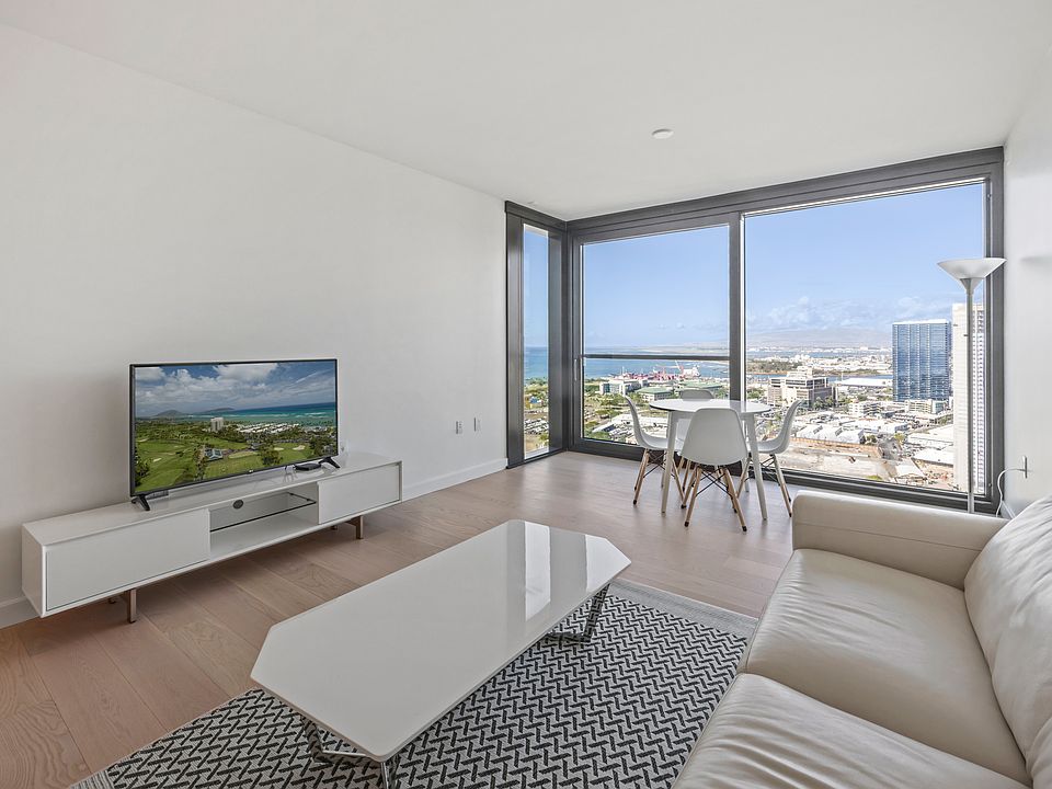 Relish your life in this fully furnished home in the brand new Kakaako Luxury Tower Victoria Place. Your home comes with oceanview, tall 9 foot ceilings, French balcony, and floor to ceiling windows to make it feel spacious and open. The oak engineered hardwood floors, wood paneled Studio Becker cabinetry, and quartz countertops add warmth to your home. Your home's kitchen contains top-end subzero and wolf appliances including a gas range and wine refrigerator. Tradewinds will keep your home cool most days, on the few warm days the Central AC will be there to take care of you. Victoria Place's common areas will leave you in the lap of luxury with all the amenities. Run cardio in the gym while overlooking the tropical garden, or swim it in the dedicate lap pool in the garden. Savor time spent with friends and family in the understated BBQ pavilions, or dining room. Enjoy quiet time with your self in the whirlpool, cold plunge, and sauna in the secluded spa area. Relax in the infinite pool overlooking the Pacific Ocean while the sun sets over the horizon. Victoria Place is located in the trendiest neighborhood in Hawaii; Kakaako. You are minutes away from the newest bars, and restaurants on island. Whole Foods, Ward movie theaters, and the beach are only a block away in this eminently walkable neighborhood. Owner pays for water, regular internet, and regular cable tv. Tenant is responsible for Electricity. Security Deposit is one month's rent. No Smoking. No Pets.
