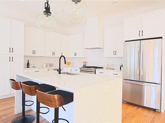 - Kitchen Features: Breakfast Bar, Eat-in Kitchen, Pantry, View to Family Room, Stone Counters, Kitchen Island, Cabinets White