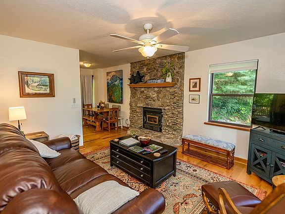 - Fireplace features: Wood Burning, Stone, Blower Fan