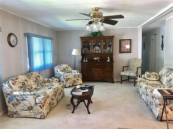 HOME IS A 2 BEDROOM 2 BATHROOM WITH A FRONT FLORIDA ROOM THAT IS BEING USED AS AN OFFICE. UPDATED KITCHEN WITH A LARGE PANTRY WITH ROLL OUT SHELVES. REFRIGERATOR HAS AN ICE MAKER. WALK IN CLOSET IN THE MASTER BEDROOM AND A PLACE TO EASILY PUT THE WASHER AND DRYER INSIDE IF YOU CHOOSE TO RUN THE PLUMBING AND ELECTRICAL. THE EXTRA LARGE SHED IS A HANDYMAN'S WORKSHOP. THE LOCATION IN THE PARK IS EASY ACCESS IN AND OUT OF THE COMMUNITY. NEWER WINDOWS THROUGHOUT AND RECENTLY UPDATED BATHROOMS WHICH BOTH HAVE WALK IN SHOWERS. THIS HOME IS READY FOR IMMEDIATE ACCESS AND CAN CLOSE QUICKLY. THE 55+ COMMUNITY IS TRULY A MUST SEE. 2 POOLS AND JACUZZI'S ALONG WITH A CLUBHOUSE WITH A BILLIARD AND FITNESS ROOM. THE LIBRARY IS FOR THE BOOK WORMS IN THE COMMUNITY AND THE COVERED SHUFFLEBOARD COURTS WHEN IT IS RAINING. IF IT IS BEAUTIFUL OUTSIDE YOU CAN PLAY GOLF ON THE 9 HOLE PAR 3 GOLF COURSE IN THE MIDDLE OF THE COMMUNITY FOR A SMALL YEARLY FEE TO JOIN THE MEMBERSHIP OF $305 OR PAY $10.00 WHENEVER YOU WANT TO PLAY. ENJOY THE FLORIDA RETIREMENT LIFESTYLE IN THIS 55+ MOBILE HOME COMMUNITY.