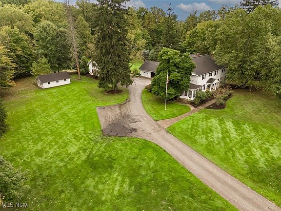 Feelings of comfort and nostalgia abound upon entering this light filled, welcoming home. This landmark home sits on a very rare, gorgeous, 3 acre property with serene lake views, expansive open areas of grass, and a large, wooded area with a variety of mature trees. The main house is approx. 4700 sqft of professionally and thoughtfully decorated space (plus the 1300 sqft guest house!). The orignal home has 4 bedrooms (all upstairs), 3 full baths, 2 half baths, and 3 fireplaces. The primary bedroom is a retreat with vaulted ceilings, a huge custom built-in window seat, its own separate living space, large bathroom, and an abundance of closets and storage space. The other 3 bedrooms have vaulted ceilings and walk-in closets with custom closet organization systems. The unfinished basement is freshly painted with a half bath, tankless hot water heater, and a B-Dry waterproofing system. The 2-story modern guest house is certified by The Green Building Initiative and contains a Geothermal hybrid system for heating and cooling. It features easy one floor living with a gracious family room with fireplace open to the full kitchen with stone countertops, breakfast bar, and built-in appliances. It also has a separate first floor bedroom, full bathroom and walk-in closet. The 2nd story loft is expansive with hardwood floors, metal railings, office area, and rec/extra sleeping area. The guest house also has its own, large patio area overlooking an extremely private backyard. There is a noteworthy 3 car detached garage, with a loft as well as a single car garage/outbuilding that is thought to have been a dog kennel, originally. All of this, west of 306 and in Chagrin Falls Schools. It is a VERY special property - one that boasts a feeling of privacy, while still being less than 1.5 miles to downtown Chagrin Falls. **Please note that the home is in the process of being repainted and will be complete by closing**