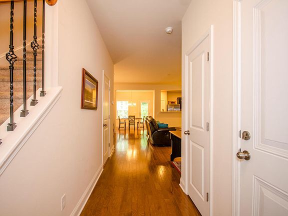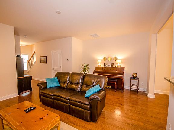 Upon entrance you are greeted with Hardwood floors that expand out the entire first floor. There is a great over sized media room with ceiling fan prewire, canned lighting and opens to the spacious eat in kitchen. The eat in kitchen comes equipped with granite countertops, 42'' cabinetry adorned with crown molding, lots of counter space, stainless steel appliances including dishwasher, Gas cook top range and built in microwave. The master bedroom is split from the other bedrooms, oversized with sitting area. The mater bathroom is equipped with tile floors, separate garden tub and glassed in shower, dual vanity, and large walk in closet. Additional bedrooms are located on the top rear of home, both are spacious and have great closet space.Laundry and dryer are located on second floor as