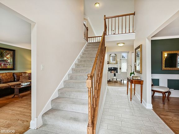 The best of all worlds can be found in this Braemar Beauty! Brick front Devonshire boasts prime interior lot, renovated kitchen and baths, hardwood floors, finished walkout, fresh decor throughout, main level study, Pella windows & Anderson door, 2017 roof, 2017 HVAC, Barrington address, Isaac Fox Elementary, and just minutes to everything. What's NOT to love?? Two-story entry and family room ensure maximum natural light and open space. Expanded kitchen with cherry custom cabinetry, square island with prep sink, seating, and pendant lights, granite counters, seed glass display cabinets, full wall of floor-to-ceiling cabinets, Miele dishwasher, Kitchenaid cooktop, recessed lights, drum shade fixture in big dining space, hardwood floors, and Anderson door to elevated deck and pretty yard. White millwork and black marble surround fireplace is flanked by two-story windows in spacious family room. Study features French doors and great views of private yard. Crown and panel frame molding with chair rail in dining room. Huge living room with bay window. Carved chest-style vanity and framed mirror in powder room. Primary suite boasts customized walk-in closet, lighted ceiling fan, and updated bath with white Shaker cabinetry, heated wood plank porcelain floor, oversized subway tile on walls, two sinks with polished nickel column faucets, linen tower, oversized shower with bench, horizontal white tile surround, handheld rain shower, and toiletry niche. Bedrooms offer generous closets and lighted ceiling fans. Behold the walkout basement with half bath, fifth bedroom, huge rec area, exercise studio, and big laundry room! Walk out to paver patio with 2 kneewalls surrounded by pines in beautifully landscaped and fenced yard. Braemar has its own park. Walk to Cuba Marsh. Minutes to Barrington Metra station, shopping, theaters, restaurants, parks, tennis courts, downtown Barrington, and access roads. There is even a sidewalk on Ela Road! All the amenities in a first-class neighborhood and surrounded by nature...it doesn't get any better!