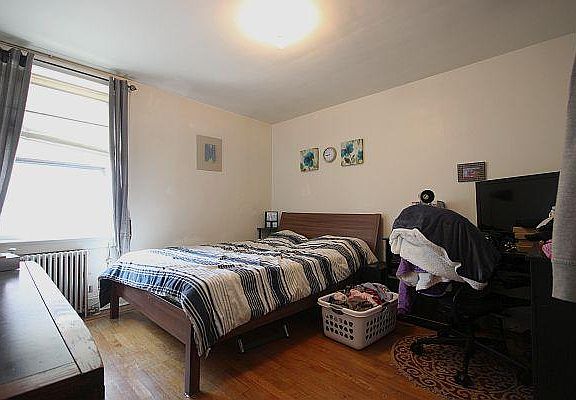 Large 2 bedroom garden apartment in a corner brownstone with private yard and private entrance! Perfect for couples or roommates with large living room, plenty of storage, a fully equipped kitchen and spacious bathroom. Features inlaid hardwood floors, original plaster moldings, windows in every room and additional basement storage. Heat and hot water included. One short block to the 126 bus to Port Authority. Subject to credit check and interview with landlord prior to approval. No smoking and no pets.