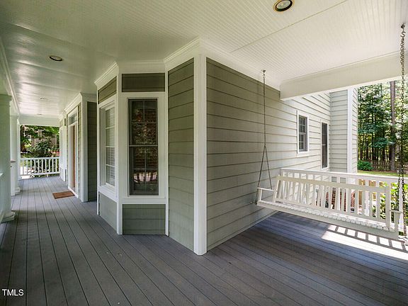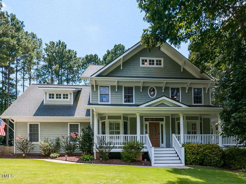 This exceptional four-bedroom, two-and-a-half-bathroom home offers an impressive 3,500 square feet of thoughtfully designed living space that seamlessly blends comfort with sophistication. Welcome home to 1100 Broadhaven Dr. where you are greeted by your expansive Southern wraparound porch with charming swing. The residence welcomes guests through an elegant archway flanked by stately pillars, setting the tone for the refined living experience within. The newly refinished hardwood floors flow gracefully throughout the main level, complemented by fresh paint and new carpeting that create a move-in-ready atmosphere. The formal dining room features a stunning bay window and trey ceiling, enhanced by plantation shutters that filter natural light beautifully. Adjacent to this space, a professional office provides the perfect work from-home environment with glass French doors, another bay window, and matching plantation shutters. The heart of the home centers around a cozy family room featuring a welcoming fireplace that opens seamlessly to the eat-in kitchen. This spacious culinary space boasts plentiful cabinets, decorative shelving, and elegant glass-front doors that showcase your finest dishware. The primary bedroom serves as a true retreat, featuring dual closets and sophisticated trey ceilings. The recently renovated bathroom features a shower that transforms daily routines into spa-like experiences. Three additional well proportioned bedrooms provide comfortable accommodations for family members or guests. One of the home's most remarkable features is the expansive finished attic space that functions as a substantial bonus room, This third-floor retreat offers endless possibilities as a media room, home gym, craft space, or additional recreation area. The dual staircase design adds both convenience and architectural interest to the home's layout. Outdoor living is enhanced by a screened porch that extends from the family room, creating the perfect space for morning coffee or evening relaxation while remaining protected from insects and weather. The large, flat yard provides ample space for outdoor activities, gardening, or simply enjoying the natural surroundings. Additional features include a whole house water treatment system including a reverse osmosis system in the kitchen. A backup generator powered by a 500 gallon propane tank in the backyard will power your home should there be a power failure The location offers the best of both worlds, providing a prestigious Raleigh address without the burden of city taxes. Residents enjoy access to a community pool, perfect for summer recreation and social gatherings with neighbors.