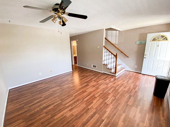 Located in the city, this 2 bedroom, 2.5 bath condo with lots of storage and a space for a home office is a must see! The downstairs has new flooring, an up-to-date kitchen, and designer paint colors. Plus, ALL appliances stay! The back patio is surrounded by a brick fence with a walk-through gate.. The perfect amount of space for outdoor living on the concrete patio while still having a space for your beloved pets! A community pool is also available for your enjoyment. Just a short walk from this home, you will find tennis courts, walking tracks, and other outdoor activities.