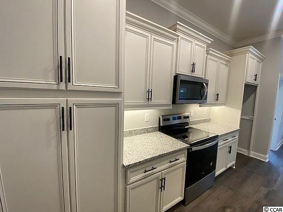 All brick 4 bedroom/3 bath home located on over an acre of land in the desirable Aynor School District. This top-selling Dogwood II home plan features a spacious great room, coffered ceilings, shiplap fireplace, granite island kitchen, large bedrooms, multiple storage closets, laminate wood flooring, and a sprawling rear lawn. In addition to the granite counter tops, this upgraded kitchen features all stainless appliances, solid wood 5-piece cabinetry, with soft close dove-tailed drawers and doors. Enjoy your meals at the spacious island, breakfast nook, or the formal dining room which features two-piece chair rail and wainscoting, and an 11’ crowned tray ceiling. The large master bedroom and bath features a garden soaking tub, over-sized shower, high-quality brass body delta valves and faucets, granite vanity tops, double sinks, and two enormous master walk-in closets. Exterior features include a carriage style automatic garage door with glass window for natural light, quiet belt drive garage door opener, and maintenance free vinyl shake gables and dormers, brick soldier course and quoined corners, over-sized concrete double drive, entry sidewalk, and more! Call today to view this lovely home!