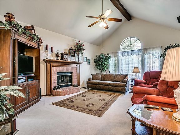 Check out this well-kept home with 3 car garage and beautifully landscaped backyard located in Edmond Schools! Recently replaced heat and air (over 8K in new equip) units and newer roof. Living room features vaulted ceiling, gas log fireplace and backyard access. Bright kitchen with tons of storage, island, desk and generous dinette area. Master bedroom provides two closets, whirlpool tub and his/hers vanities. Secondary bedrooms are spacious with walk-in closets. Hallway is full of storage options - two built in wall cabinets from floor to ceiling and a second coat closet. Laundry room includes large linen closet in addition to standard cabinets above appliance area. Professionally landscaped backyard has gates on either side, large covered patio area and steel fence posts. Schedule your showing today!