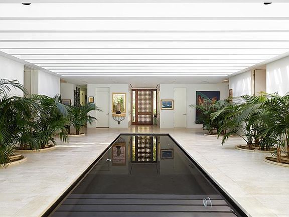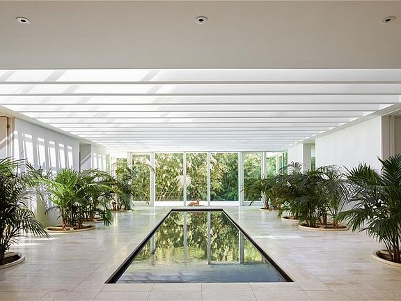 Featuring six bedrooms, seven full bathrooms and four half-bathrooms the main residence and guesthouse sits on seven landscaped lots. Entering the main residence is a reflecting pool. On the main level is a home theater, study, library, music-living room, dining room, breakfast nook and kitchen. Each room features full length glass windows with adjustable climate control, sound, lighting and retractable blinds. Second level consists of the principle suite, balcony, bath, steam and shower and sunken bathtub and large walk-in closet with an office nook. On the same level are three bedroom suites with private bath. The basement consists of a game room, equipment room, security office, storage rooms, laundry room and a storm/safe room. There are two garages which can house six vehicles. The English conservatory is climate controlled with running water and a greenhouse that is fully operational. The guesthouse has two bedrooms each with full bathrooms, a kitchenette, dining/sitting area.