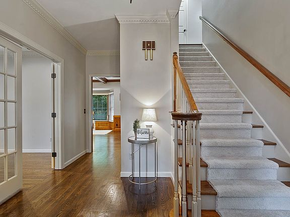 Beautifully updated & refreshed! Master suite downstairs. 3 bedrooms upstairs, 1 with private bath. Office with French doors. Kitchen remodeled with glazed cabinets, granite, all appliances remain. All Pella double hung windows, new carpet upstairs & in master bedroom, freshly painted. Sand & stain hardwoods. Full unfinished basement. 1.54 acres partially wooded with a natural creek.
