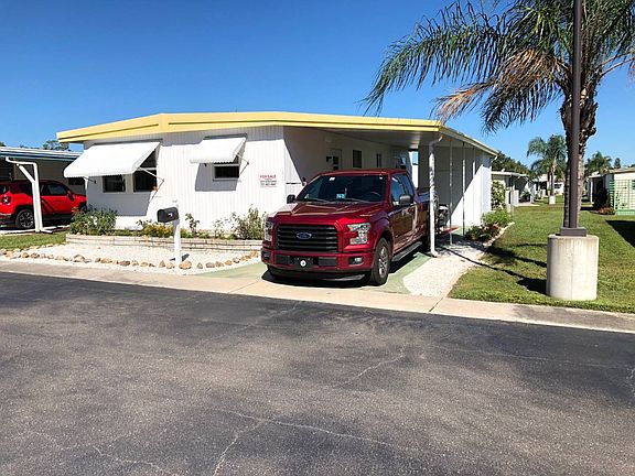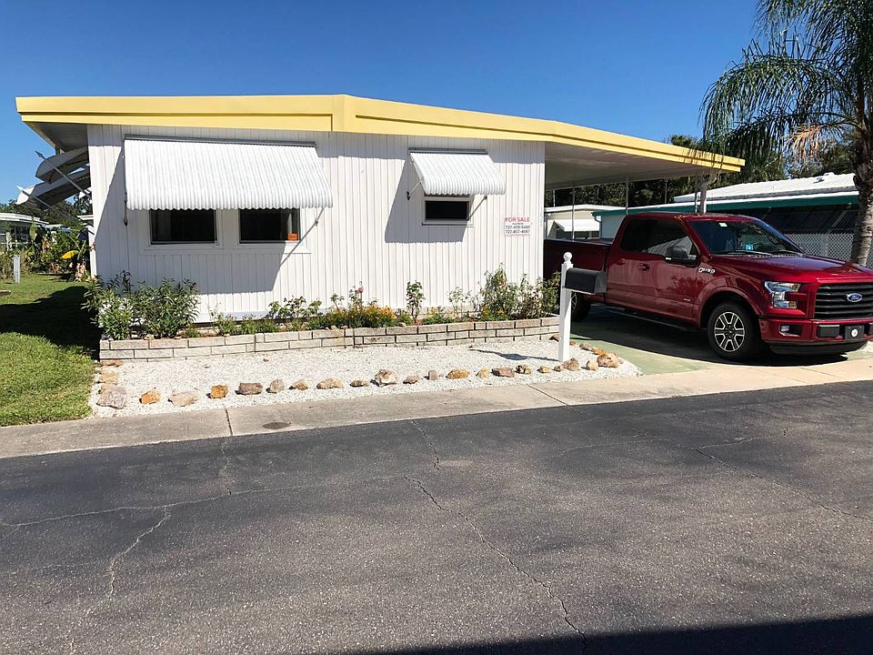 Situated on Florida's Gulf Coast, Honeymoon Park is a 55+ mobile home park in sought after Dunedin. You cannot get closer to the Dunedin Causeway and Honeymood Park than this. Within walking distance of shopping and restaurants this mobile home park is the place to be. Pets allowed. This 1969 home features 2 bedrooms and 1.5 bathrooms and has been updated to suit your needs. The open floor plan features a kitchen opent to the dining room and living room. Updated wood cabinets and a double stainless steel sink make this kitchen a beauty. Cooking on the gas stove is a breeze. Plenty of cabinets and counter tops to make preparing your meals a wonderful job. There is a window above the sink, white appliances, a cabinet with a lazy susan and a large pantry. The dining room will fit a generous table to entertain your friends and family at. Updated laminate flooring in the dining room make cleanup so easy. The living room features an extra library or bonus room to make your own and extends the footprint of the home. The master bedroom features neutral carpeting and walls, a built in dresser, 3 closets, an attached 1/2 bath with updated vanity and a mirrored medicine cabinet. The guest room is a wonderful space to entertain friends and family for the weekend. With neutral carpeting and walls, a double closet and ceiling fan your guests are not going to want to leave. The main bathroom features a newer vanity, laminate flooring, a step in shower and a newer medicine cabinet. This home has newer windows throughout the entire home. All Florida Mobile Home Sales Inc. cannot guarantee or warrant the accuracy of this information or condition of this property. The buyer assumes full responsibility for obtaining all current rates of lot rent, fees, and pass-on costs. Additionally, the buyer is responsible for obtaining all rules, regulations, pet policies, etc., associated with the community, park, or home from the community/park manager. All Florida Mobile Home Sales Inc is not responsible for quoting of said fees or policies.