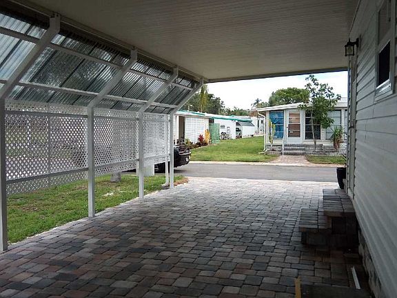 This is a beautiful 2 bedroom 1 bathroom mobile home. This home is located in desirable Dunedin Florida within walking distance to shops the trail the Dunedin Causeway and Honeymoon Island. this home has brand new low-e insulated windows. New wood look laminate flooring. New kitchen cabinets new countertops and new tile backsplash. New vinyl siding new screens on the large front porch and new pavers on the large extended driveway. All new appliances and new washer and dryer in the shed. Priced to sell and accepting offers. This house is selling with all new furniture and bed included. THIS IS A MUST SEE!
