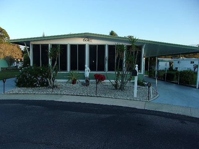 Welcome to your new beach home! This over 1000 square foot home screams Beach House from the moment you enter. From the furniture to the décor, you'll feel it, and it all stays with the home. sits in the quiet cul-de-sac known as the 8th circle inside Honeymoon mobile home park. Honeymoon Park is a highly sought after community to live in. It's a very active 55+ community that sits on the Pinellas bike trail, is within walking distance of the Dunedin Causeway and numerous restaurants and shops. You'll love to call this place home! The home has 2 bedrooms, 2 full bathrooms, a large open living room and dining area, adjacent to a beautifully remodeled kitchen. The entire home has new flooring. Vinyl in the bathrooms and laminate throughout the rest of the home. Most of the windows in the home are newer. The Florida room extends the entire front of the home and is completely new. New sliding glass windows with screens will allow you to enjoy the gulf breeze when you want, or keep them closed to block out the sun. They are all tinted for sun block. The home is beautifully landscaped on the outside, with fresh paint on the exterior of the home. There is also a rodent barrier around the entire base of the home, to keep unwanted critters out. The carport is large and includes a motion security light for extra protection. This home sits on an extra large lot and also has a second driveway for the convenience of multiple vehicles.
