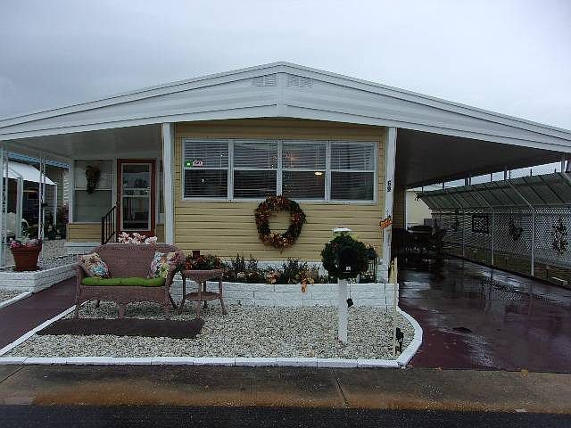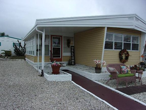 This home meets the definition of lovely! Flooring, paint colors, window coverings and décor are just beautiful and in great taste! It's a one bedroom, one bathroom home with numerous updates. The kitchen has been completely updated with new cabinets, countertop and sink and is equipped with fairly new GE appliances. The bathroom features double sinks, all new fixtures, a full-size walk-in shower and vinyl flooring. The plumbing in the home was all updated in 2018. The flooring has been updated with laminate throughout, including the lanai. The lanai is perfect to make a sunroom, or guest quarters when company comes to enjoy the Florida sunshine. The exterior of the home incudes new windows, vinyl siding and a complete roof over which covers the home, the lanai and the carport. The carport has been extended for ease of getting in and out of your vehicle and privacy has been added to enjoy a relaxing space on the carport. The shed is large and attached to the home. It includes a washer and dryer hookup as well as shelving. Lattice has been installed around the base of home to keep critters out and improve the curb appeal. There is a patio in the rear of the shed to enjoy the sun. This home is located inside Honeymoon Mobile Home Park which is a highly sought after community to live in. It's an active 55+ community that sits on the Pinellas bike trail, is just a short walk or bike ride away from the Dunedin causeway and 3 short miles from Honeymoon Island beach. There are multiple shops and restaurants also within walking distance. Honeymoon Mobile Home Park provides many amenities for its residents including a heated pool, clubhouse, shuffleboard courts and horseshoes in addition to the community activities. You'll love living in Dunedin! All listing information is deemed reliable but not guaranteed and should be independently verified through personal inspection by appropriate professionals. American Mobile Home Sales of Tampa Bay, Inc cannot guarantee or warrant the accuracy of this information, measurements or condition of this property. Measurements are approximate. The buyer assumes full responsibility for obtaining all current rates of lot rent, fees, and pass-on costs. Additionally, the buyer is responsible for obtaining all rules. regulations, pet policies, etc., associated with the community, park, or home from the community/park manager. American Mobile Home Sales of Tampa Bay, Inc is not responsible for quoting of said fees or policies.