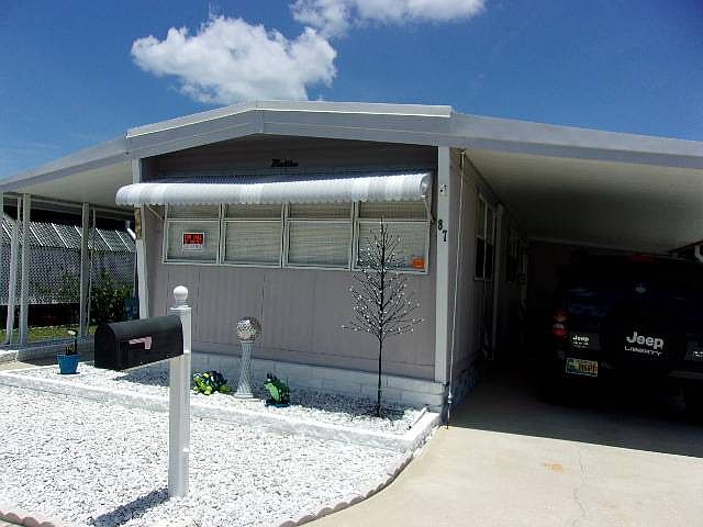 This very nice 1 bedroom 1 bath home is perfect for your winter escape to sunny Florida or your way of downsizing and enjoying retirement. No updates needed!! The work has already been done. This home is very clean and has been well taken care of. The floors have been updated with beautiful laminate and ceramic tile. The plumbing and electrical box have been updated. The bathroom has been completely remodeled with a large vanity and step in shower. The paint and décor throughout scream Florida living. The entire home including the carport and lanai have been covered with a roof over, making it more energy efficient and preventing leaks. The roof has a lifetime warranty. The home is cooled and heated with energy efficient mini-splits. Step outside and you'll appreciate an XLarge shed! 120 square feet that includes a full size washer, dryer, refrigerator and hot water tank and there is still tons of room for storage. The home will be sold partially furnished. Don't miss this one!!!! It won't last long!! The location is Honeymoon Mobile Home Park which is a highly sought after 55+ community. Honeymoon sits on the Pinellas bike trail, is a short walk to the grocery store, multiple dining locations, shopping and more. It's also just a short bike ride to the Dunedin Causeway to take in a sunset or go a couple more miles and you're on beautiful Honeymoon Island beach. All listing information is deemed reliable but not guaranteed and should be independently verified through personal inspection by appropriate professionals. American Mobile Home Sales of Tampa Bay, Inc cannot guarantee or warrant the accuracy of this information, measurements or condition of this property. Measurements are approximate. The buyer assumes full responsibility for obtaining all current rates of lot rent, fees, and pass-on costs. Additionally, the buyer is responsible for obtaining all rules. regulations, pet policies, etc., associated with the community, park, or home from the community/park manager. American Mobile Home Sales of Tampa Bay, Inc is not responsible for quoting of said fees or policies.